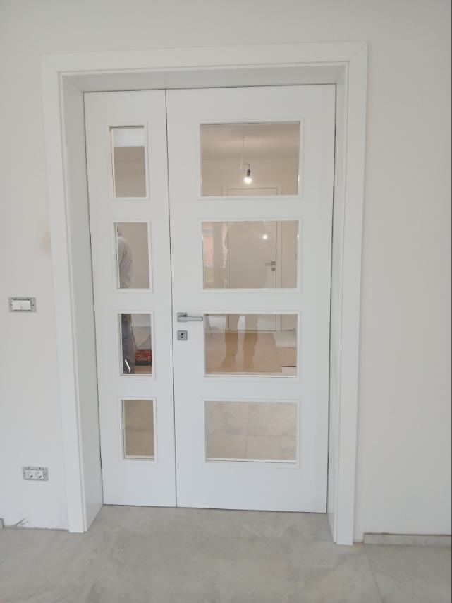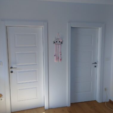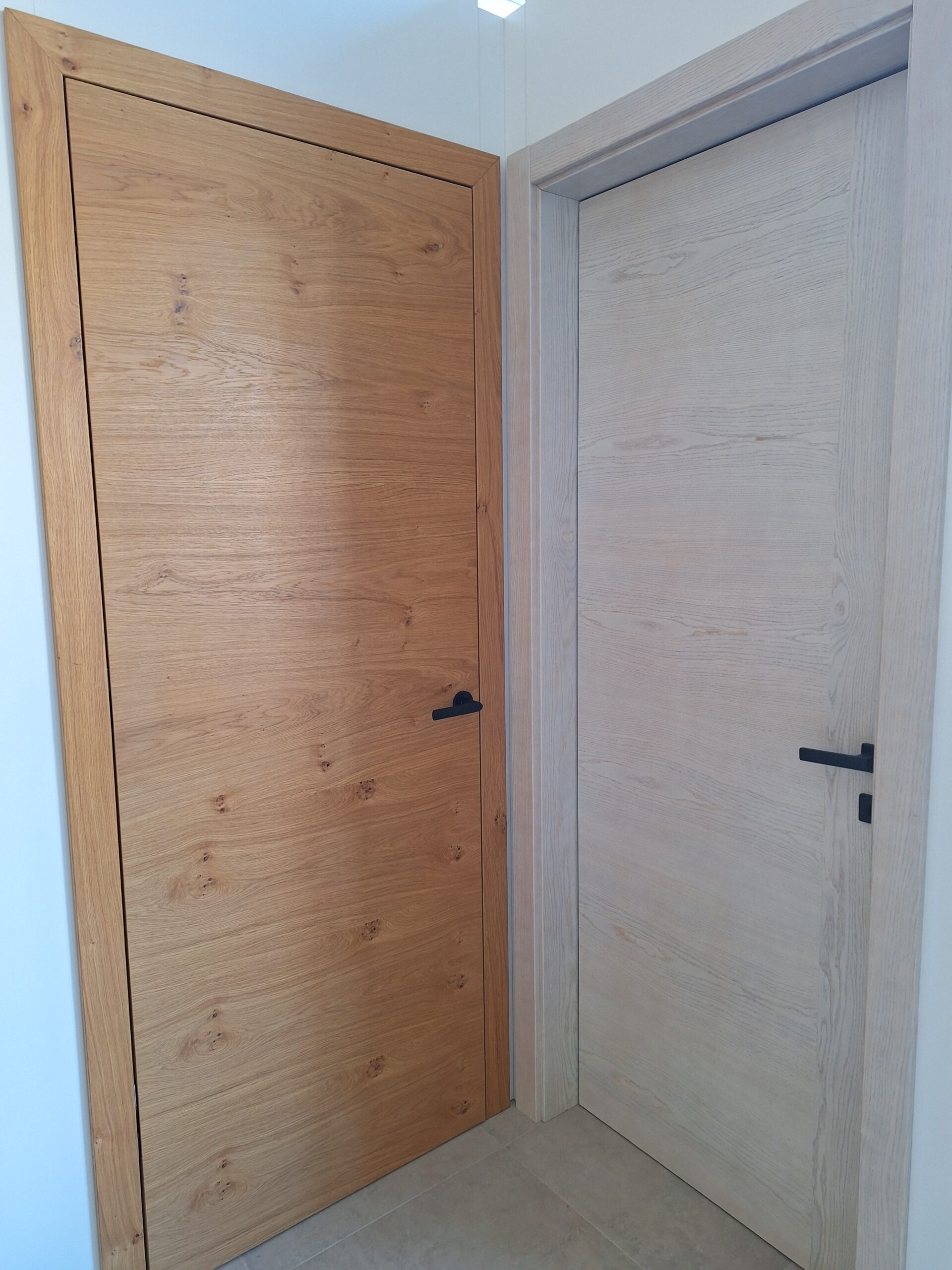 Potem so furnirana notranja vrata z VIDNIMI NASADILI in KLASIČNO KLJUČAVNICO prava izbira.